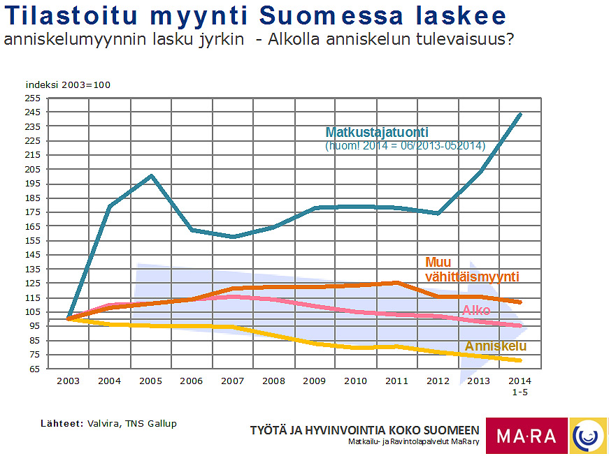 Kun yhtälöön lisätään vähittäiskaupan oikeus myydä vahvempia alkoholijuomia johtaa se vääjäämättä valvotuissa olosuhteissa tapahtuvan alkoholimyynnin laskuun. Tällaisia aikoja siis elämme – kahdeksan vuotta taantumassa näkyy nimenomaan uusien sukupolvien ravintolapalveluiden käyttöasteessa ja asettaa alan yrityksille sisällöntuotantoon ja palveluihin painetta. Muutospaineet ovat toki osa alan yrittämisen henkeä ja kuuluvat asiaan, niiden kautta uudet palveluideat muotoutuvat ja asiakkaan saama palvelu paranee entisestään.